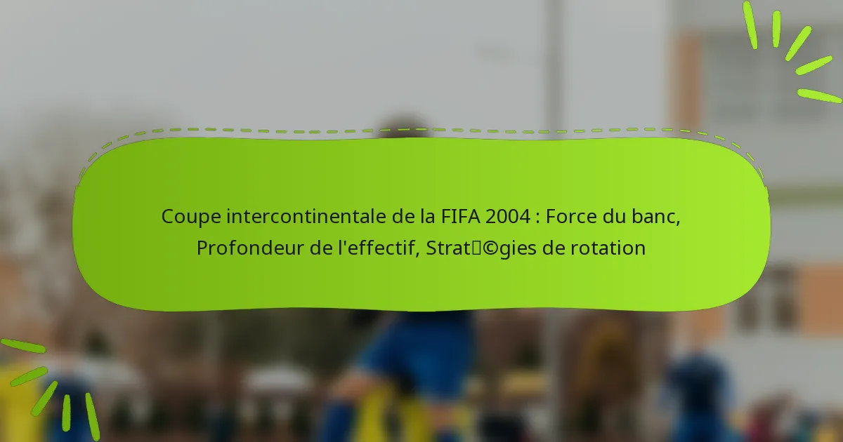 Qu’est-ce que la profondeur de banc dans le contexte de la Coupe intercontinentale de la FIFA 2004 ?