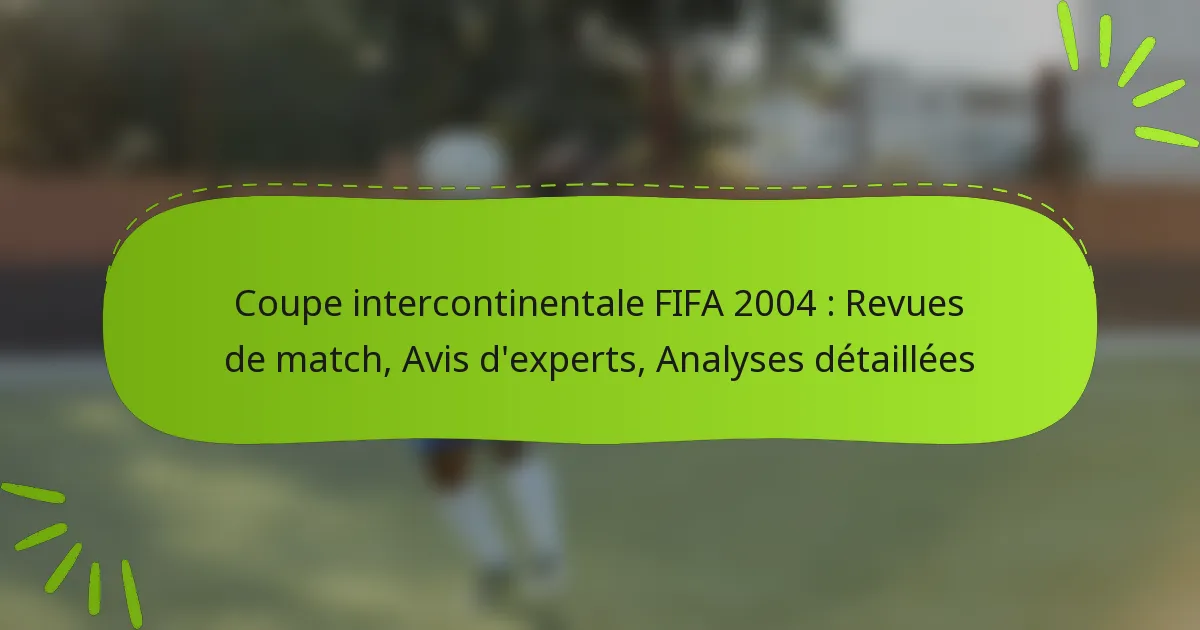 Quelles opinions d’experts ont émergé de la Coupe intercontinentale de la FIFA 2004 ?