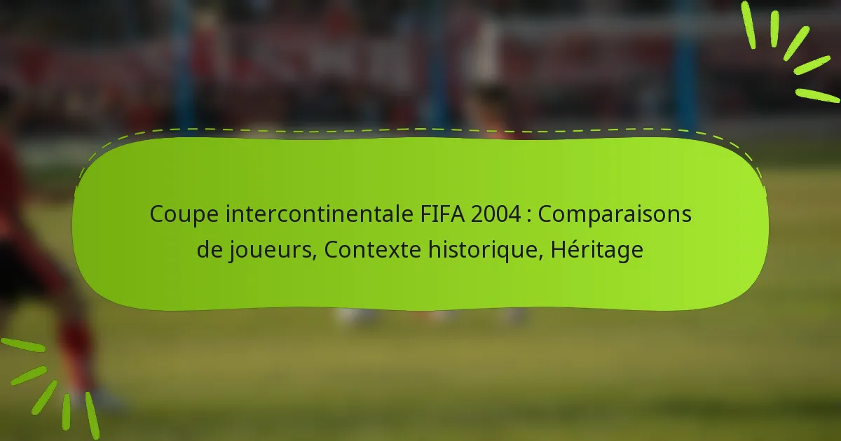 La Coupe intercontinentale de la FIFA, établie dans les années 1960, servait de confrontation prestigieuse entre les champions d’Europe et d’Amérique du Sud. En 2004, elle était devenue un événement clé du calendrier footballistique, attirant une attention et un engouement significatifs. L’héritage du tournoi reposait sur des matches mémorables et des joueurs légendaires, contribuant à son statut dans le monde du football.