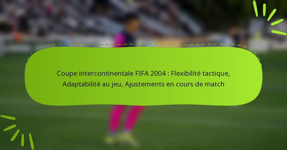 La Coupe intercontinentale de la FIFA 2004 a mis en évidence l’importance de la flexibilité tactique et de l’adaptabilité dans le football. Les équipes ont démontré leur capacité à ajuster les formations et les stratégies en temps réel, répondant efficacement à la nature dynamique des matchs. Les entraîneurs ont joué un rôle clé dans la mise en œuvre de ces ajustements en cours de match, qui ont finalement influencé les résultats des jeux.
